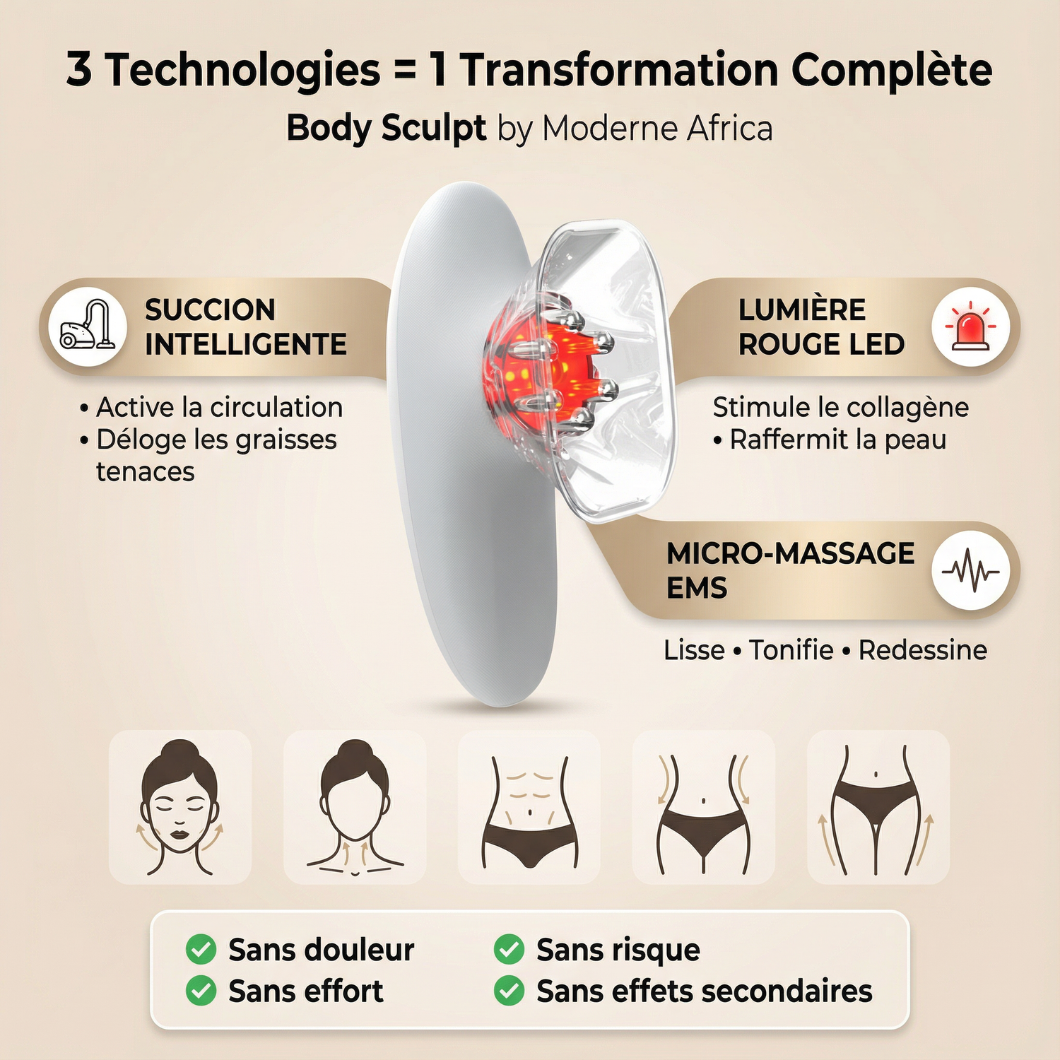 3 Technologies Professionnelles en 1 Seul Appareil (Les mêmes qu'utilisent les instituts à 150,000 CFA la séance)